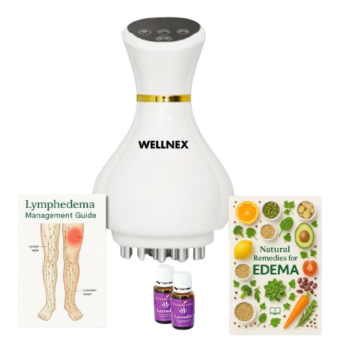 The Wellnex LymphoPro® Therapy Device targets this at the root by combining EMS, vibration, heat, and red light therapy to clear fluid buildup, boost blood flow, and relieve painful pressure on your nerves.